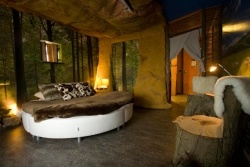 In Hotel Stadskanaal in Drenthe boek je deze bijzondere kamer met een fantastisch uitzicht over de échte hunebedden. Ondanks het primitieve gevoel en de uitstraling geniet je in deze kamer van alle vier sterren facetten die je verwacht bij een normale hotelkamer. Zo ook van de rots als plafond met een verborgen tv en achter een andere schors een fijne minibar.