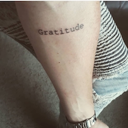 De reden waarom ik dit op m’n lichaam heb laten zetten is omdat dankbaarheid een van mijn allerbelangrijkste waardes is.