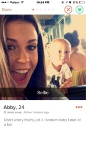 Dit is een goede eerste tinderfoto aangevuld door een grappige bio. Het lokt meteen uit tot een praatje.