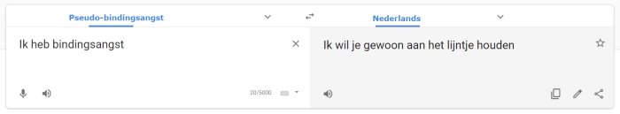 Ha, flauw hè? Dat heb je nou eenmaal als je uit een familie van psychologen komt… (Jup, zowel mijn vader als mijn broer zijn psycholoog). Toch zit er wel een kern van waarheid in. Een waarheid die zeker in deze situatie belangrijk is. Een relatie hebben met iemand met verlatings- of bindingsangst is namelijk niet niks.
